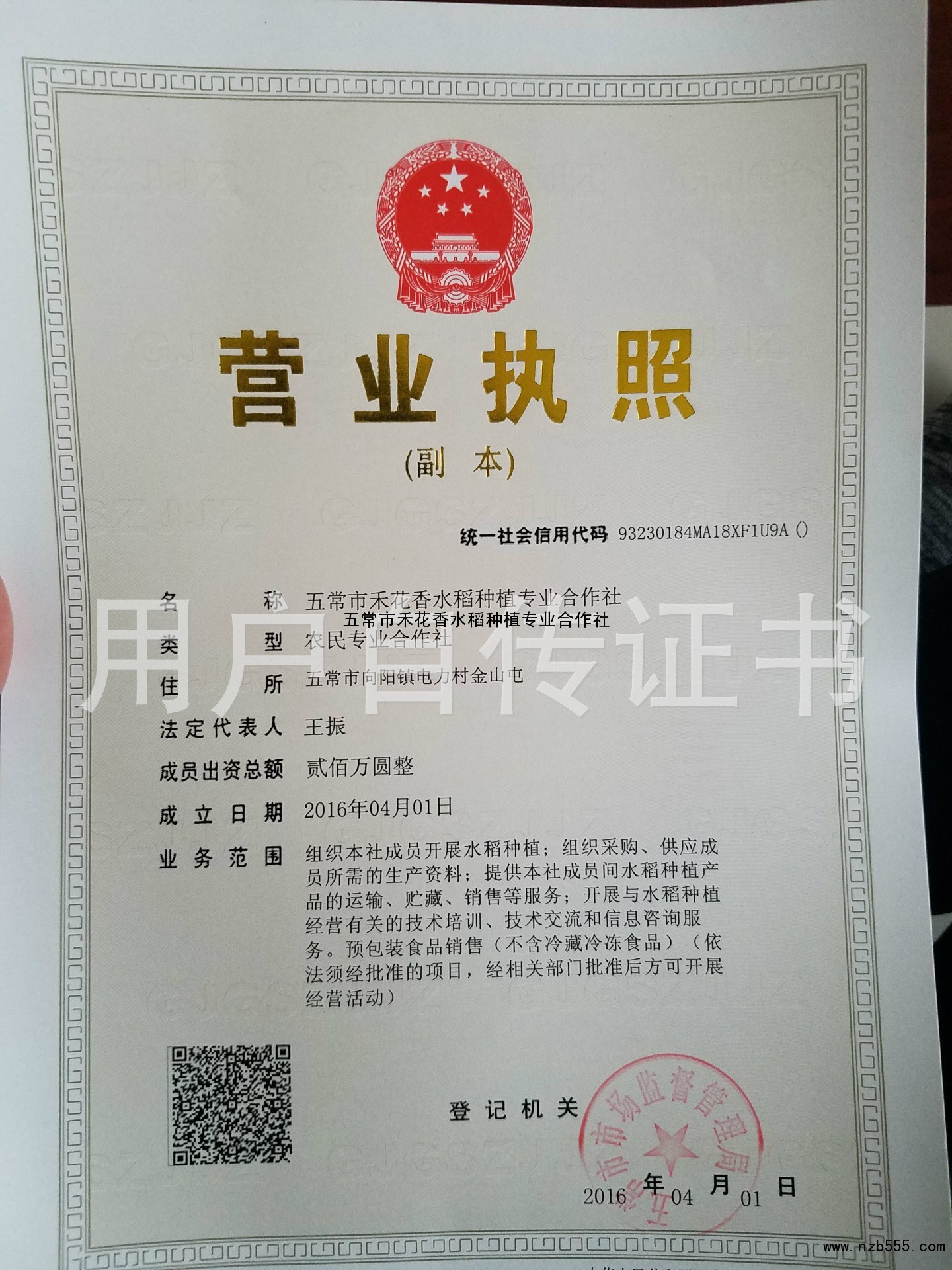 五常市禾花香水稻種植專業合作社