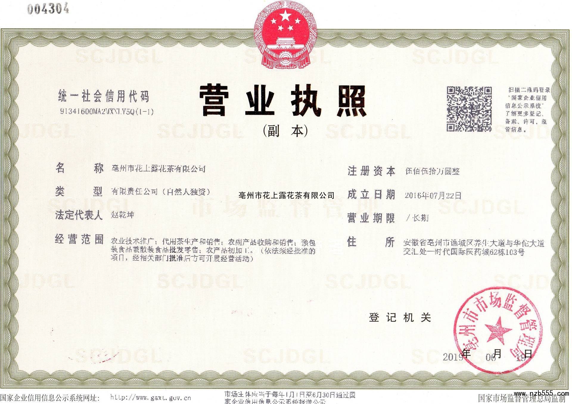 亳州市花上露花茶有限公司
