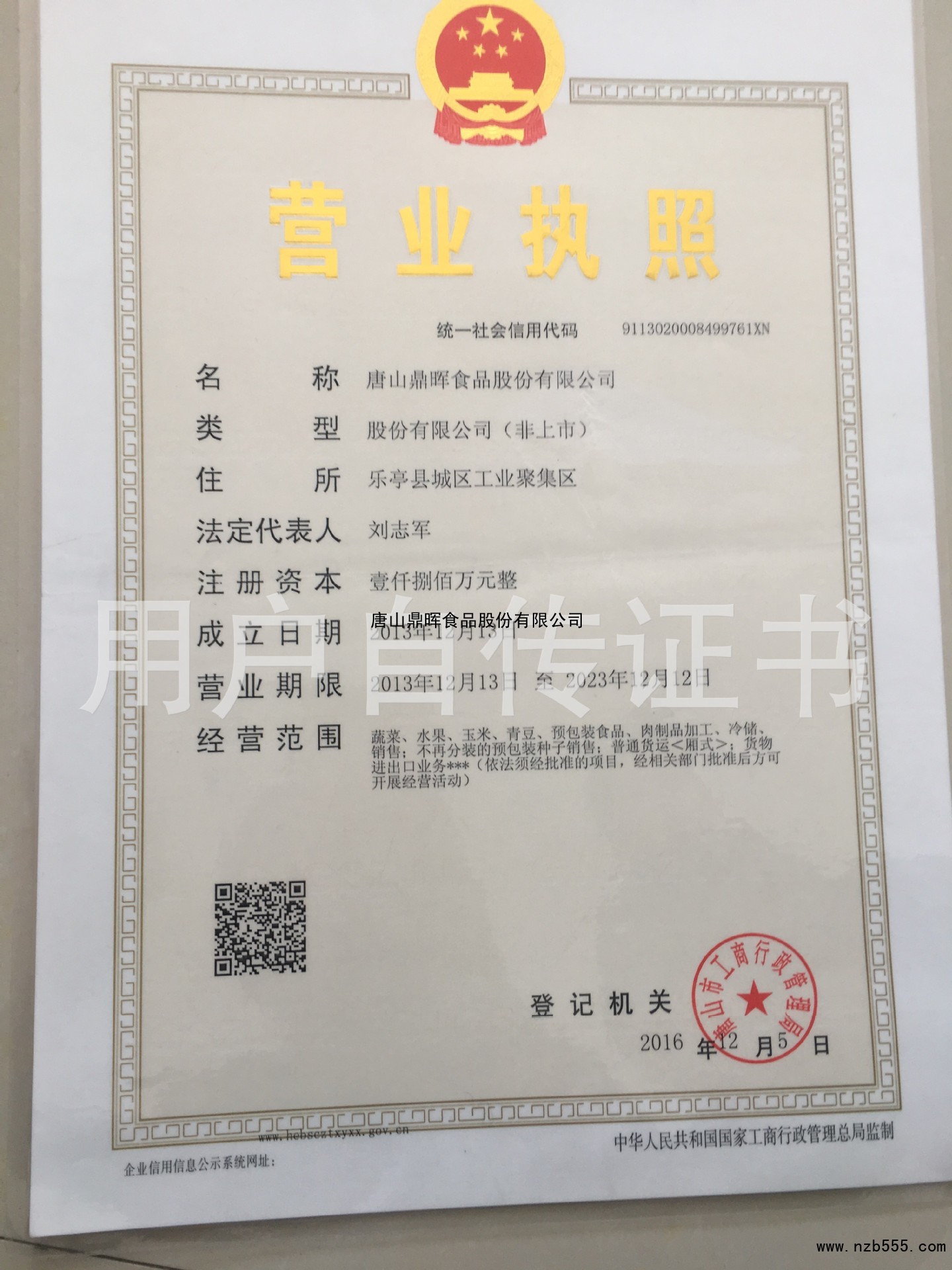 唐山鼎暉食品股份有限公司