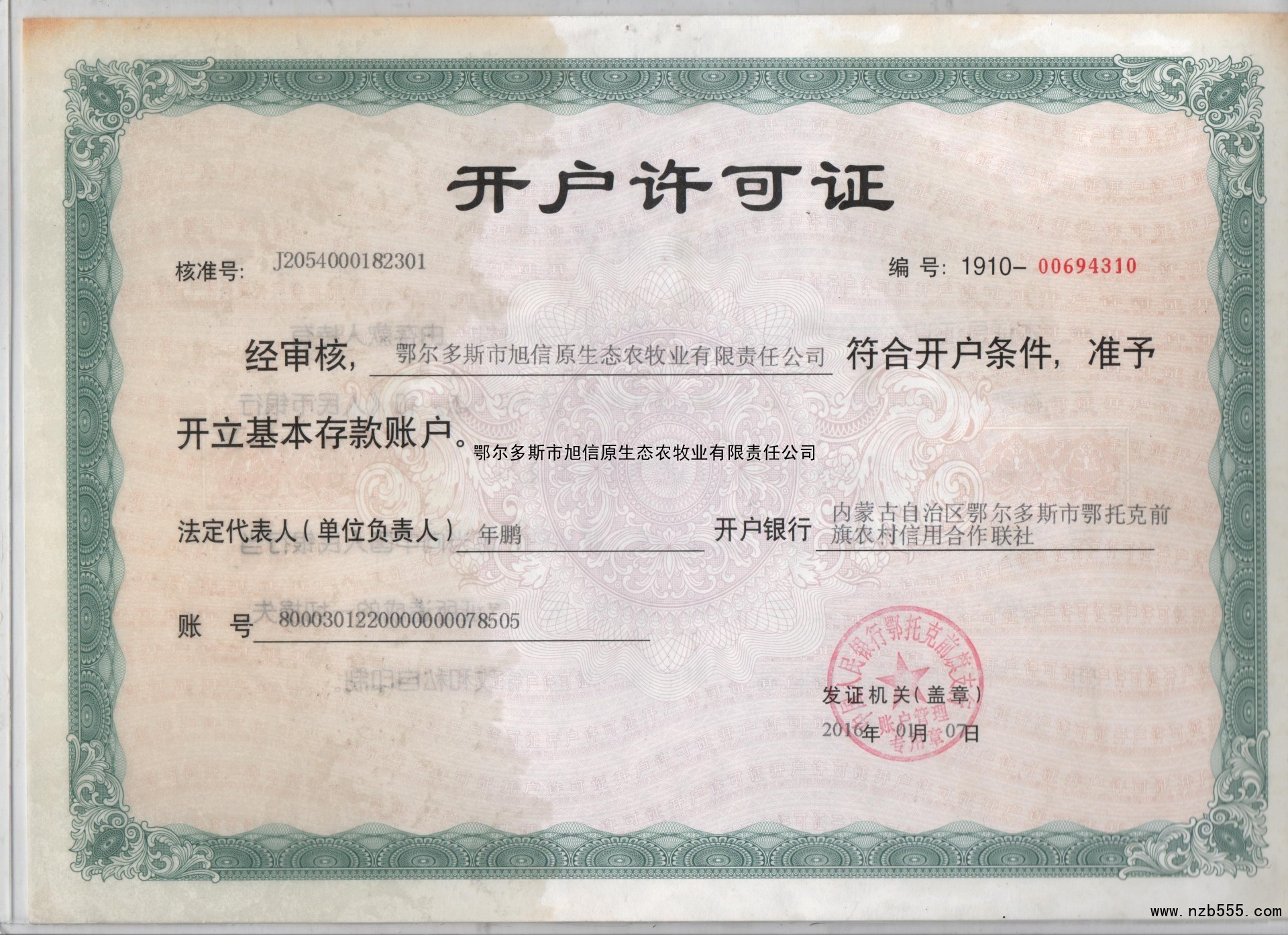 農牧業開戶許可證