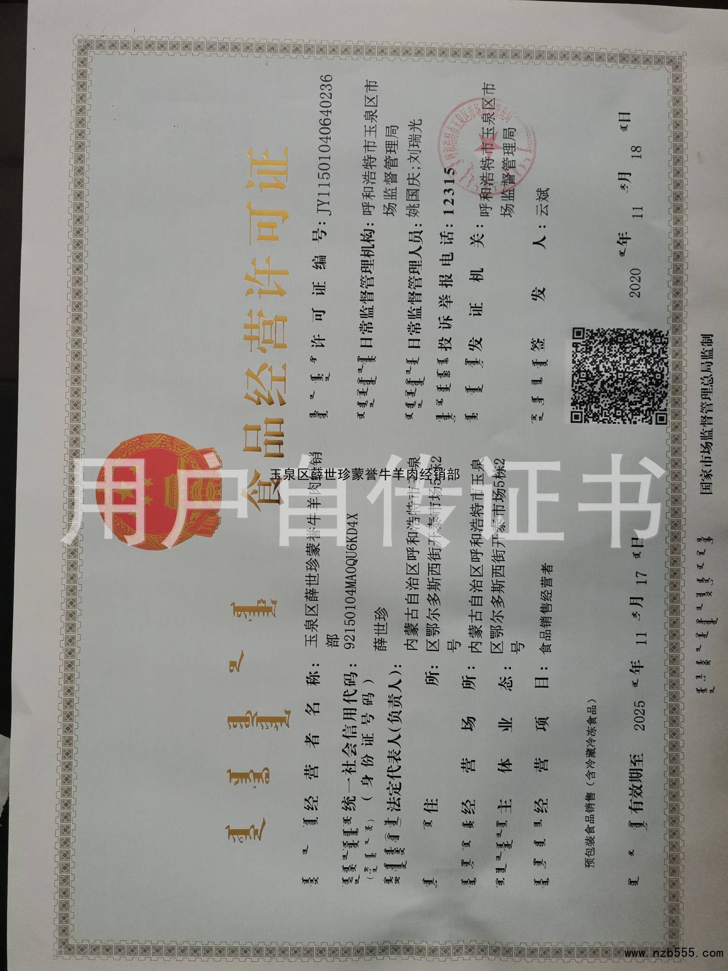 玉泉區薛世珍蒙譽牛羊肉經銷部