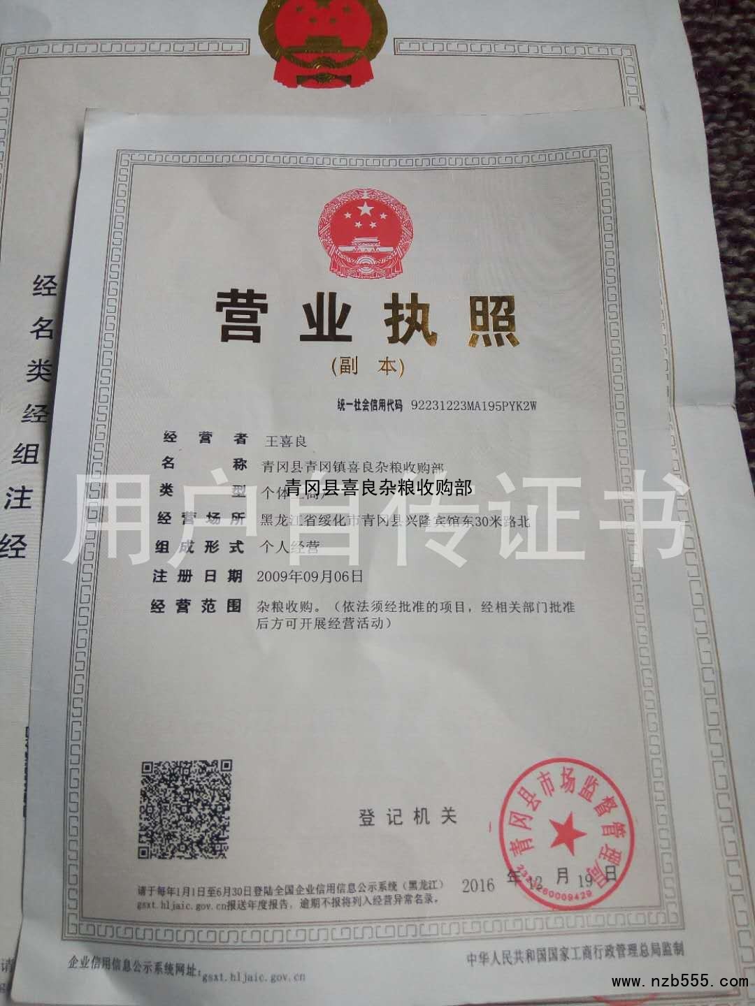 青岡縣喜良雜糧收購部