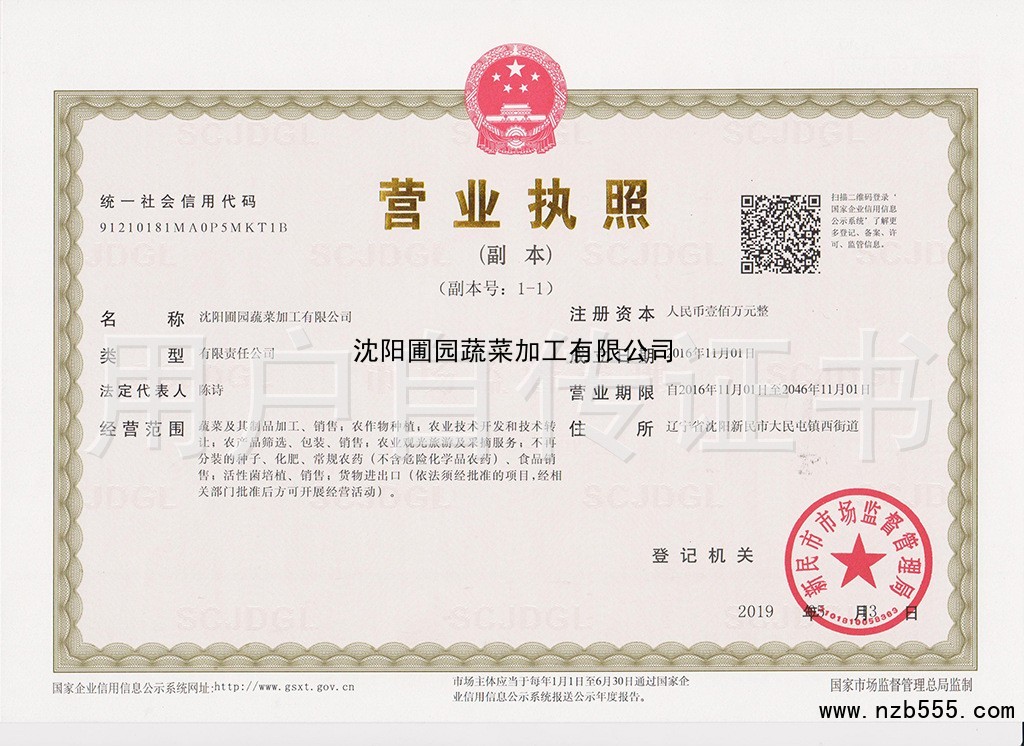 沈陽圃園蔬菜加工有限公司