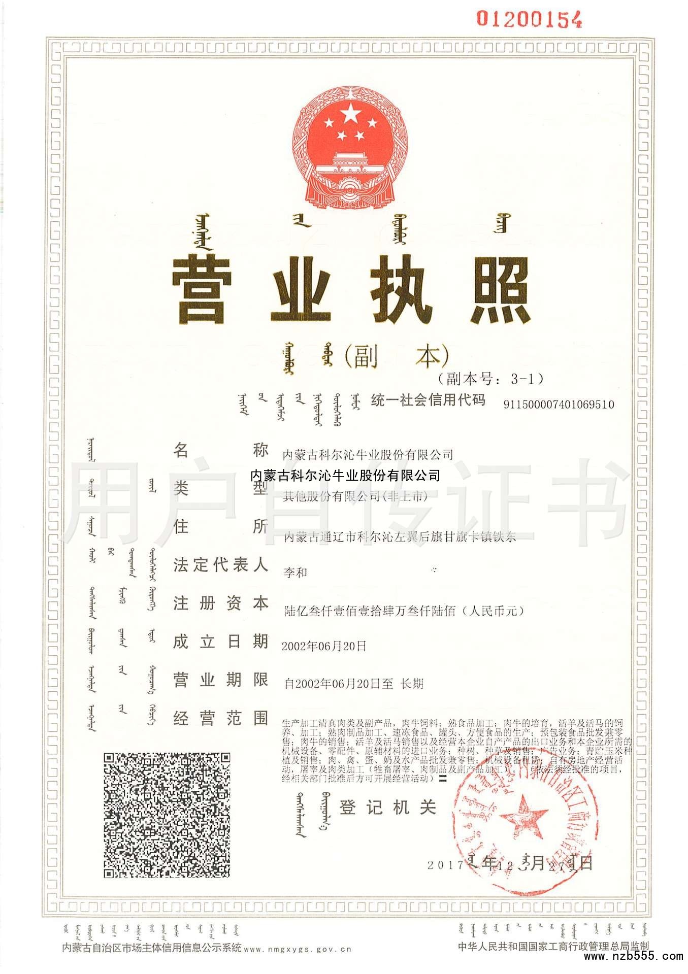 內蒙古科爾沁牛業股份有限公司