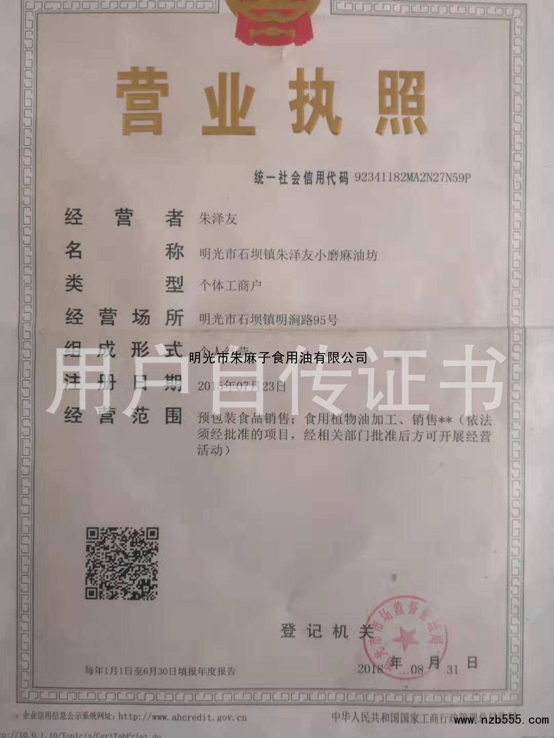明光市朱麻子食用油有限公司