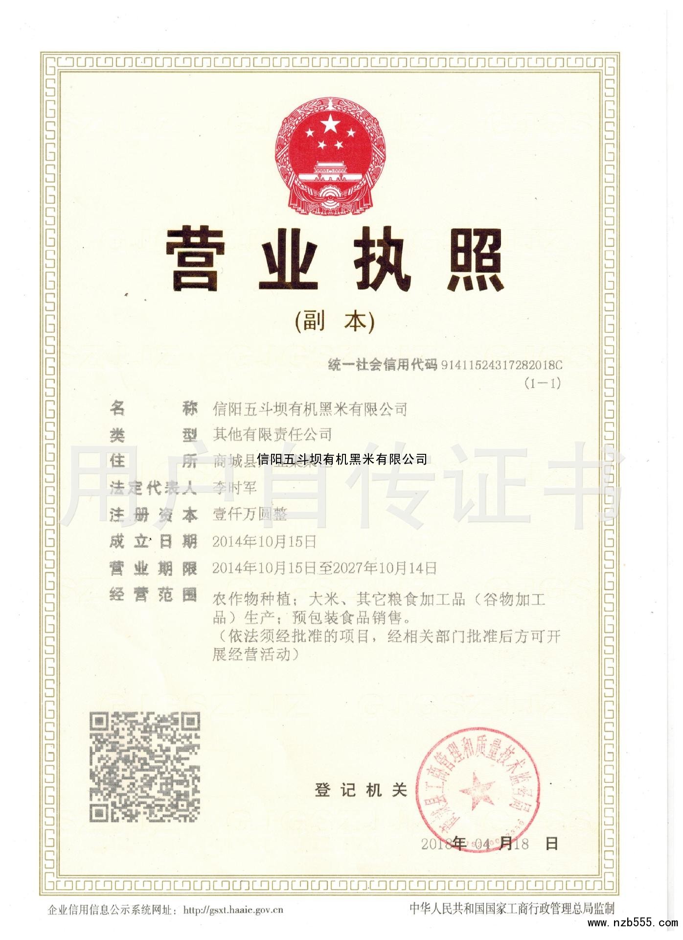 信陽五斗壩有機黑米有限公司