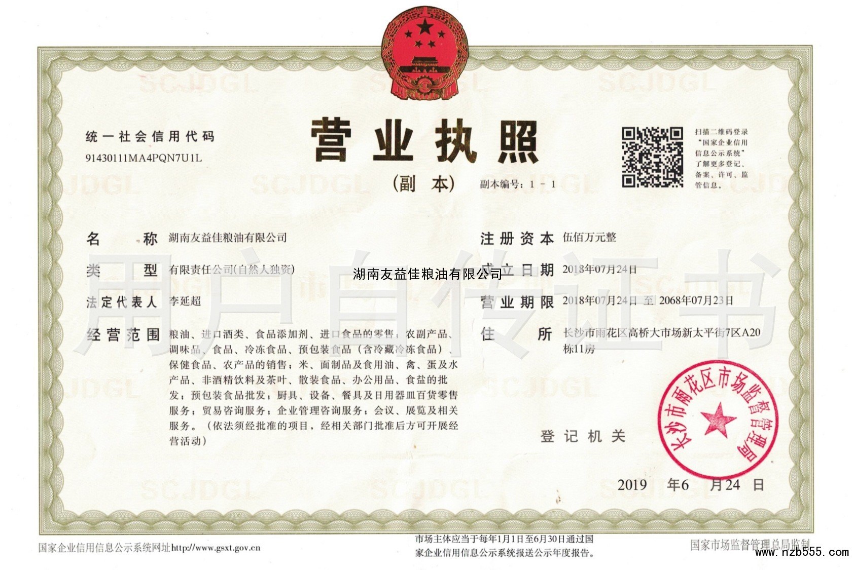 糧油、進口酒類、進口食品、調味品、清掃、清洗日用品、日用雜品的零售;食品、農...