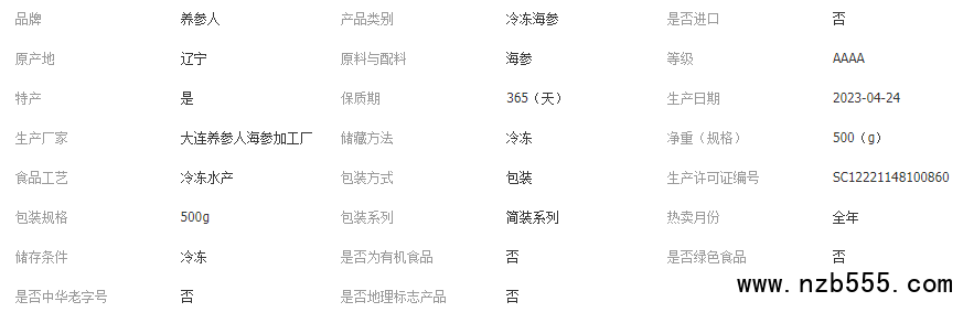 養參人海參工廠真空無冰 大連冷凍即食海參批發500g