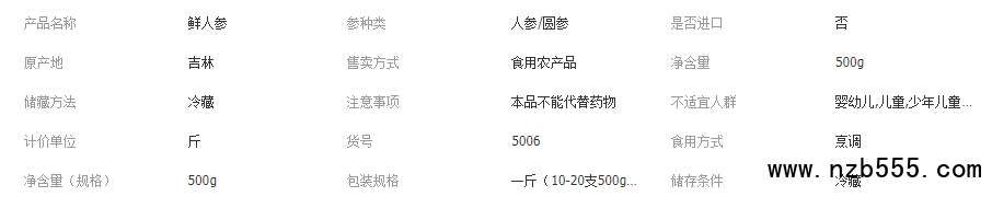 長白山人參凈重500g(3-20支) 泡酒煲湯產地批發 鮮人參