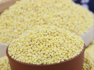 陜北軟黃米,顏色淺黃色,大顆粒,糜子脫皮而成,營養很豐富,在陜北功勞很大,辦大事少不了它,常見食用方法:粽子,黃饃饃,黃米糕(陜北油糕),瓜飯(南瓜和軟黃米一塊熬制),油圈圈等。