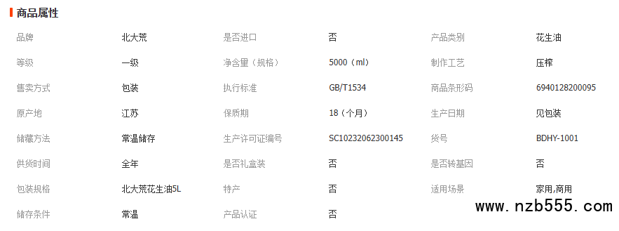 北大荒壓榨一級花生油5L純正濃香植物油炒菜油炸家用5升花生油