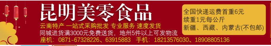 昆明美零食品 :主營云南特產、休閑食品、干果炒貨、散裝食品等暢銷產品,公司與多家零售商和代理商建立了長期穩定的合作關系。 昆明美零食品,已有線下實體批發十余年經驗,同19個廠家保持長期供應合作關系,有省內外長期合作商家近500余下位 [