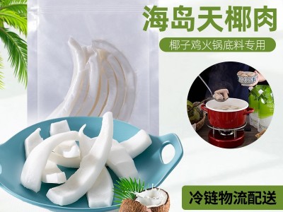 海南新鮮純椰青椰子去殼椰肉椰子雞火鍋專用椰肉條特產水果批發