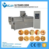 該機由供料系統、擠壓系統、旋切系統、加熱系統、傳動系統、控制系統組成。采用先進的螺桿擠壓膨化技術,利用高溫高壓將物料熟化并膨化成型,一次性完成。主機采用變頻調速,保證生產過程的穩定性。產品花色、品種多樣、外表美觀、自然逼真、質感細膩、原料使用廣泛。