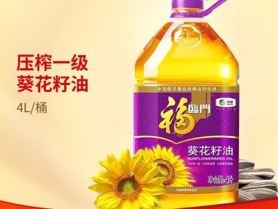 新日期福臨門壓榨一級葵花籽油4L非轉食用植物油桶裝批發中糧