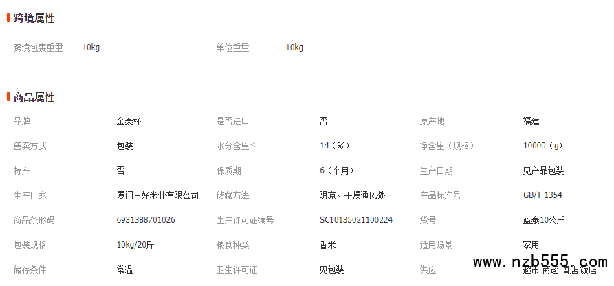 金泰杯泰國香米20斤