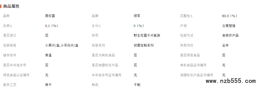 該規格為100g一瓶裝的,黑色小片,茶色小片干松露,產地收貨分揀、切片之后電烤干加工的;質量保證,可以放心購買,需要大貨可以聯系客服!