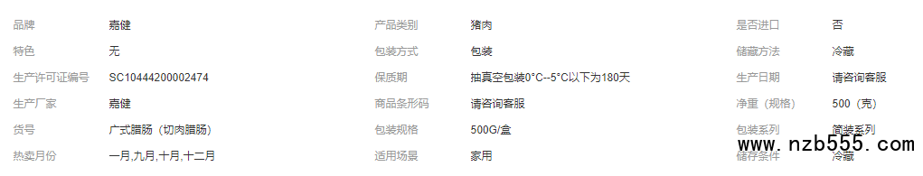 定制廣式切肉臘腸500g