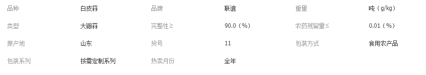 公司主要經營產品有:大蒜,大姜,大蔥,保鮮蒜米,蘋果 板栗等等。精制小包裝大蒜,分為3P,5P,100g裝.200g裝、300g裝、500g裝、1000g裝;精制大包裝大蒜主要有5kg裝、10kg裝。各種產品的規格,重量,包裝等均可根據客戶的需求開發,加工定制。