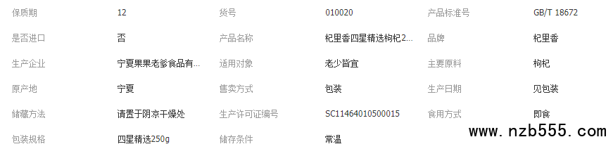 杞里香枸杞罐裝250g中
