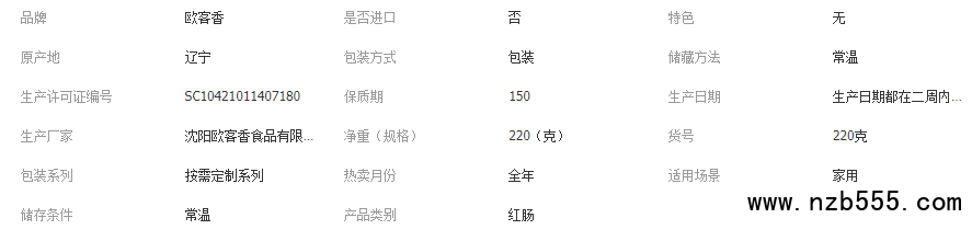 添加劑:谷氨酸鈉,紅曲紅,乳酸鈉,山梨酸鉀,乳酸鏈球菌素 貯藏方法:常溫、避光、通風干燥處