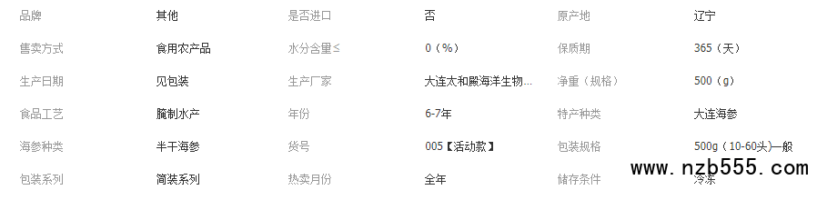 大連特產淡干海參大連