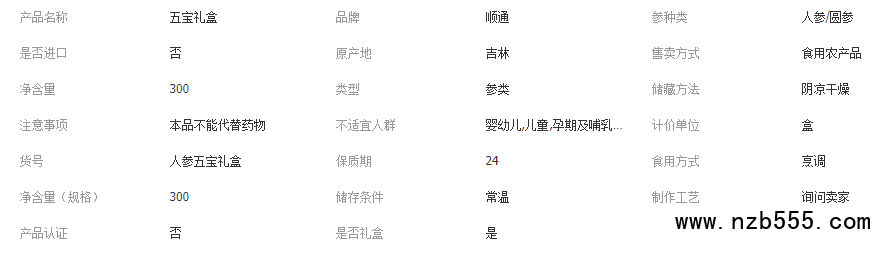 長白山特產人參五寶禮