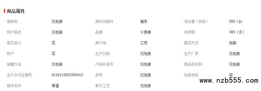 500克今麥郎原味掛面拉面