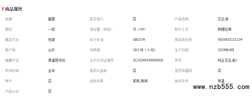 喜墾純正花生油5L物理