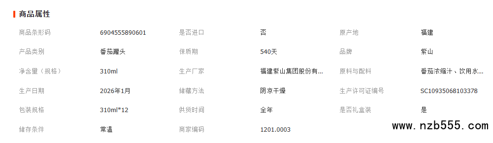紫山番茄汁310ml*12罐