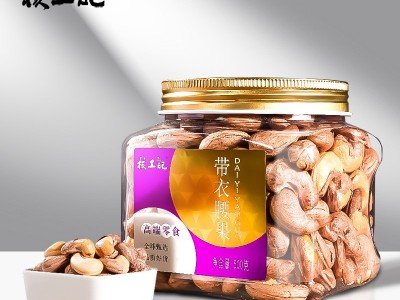 核工記 180特大帶皮紫衣腰果仁500g罐裝干果堅果休閑零食代發鹽焗